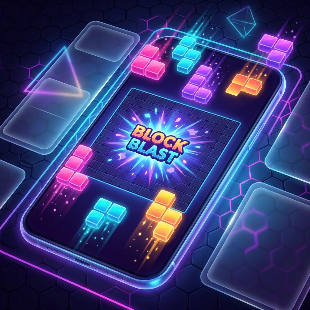 A neon-themed block puzzle game where you drag and drop shapes onto a grid. Clear complete rows and columns to score points, build combos, and use bomb power-ups strategically. Simple to learn, relaxing to play!